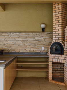 Cozinha americana, sala para 02 ambientes, área de serviço conjugada, bancadas em granito cinza, preparação para ar condicionado nos quartos e sala, armários instalados na suíte. Nos banheiros estão instalados espelhos, blindex e armários.